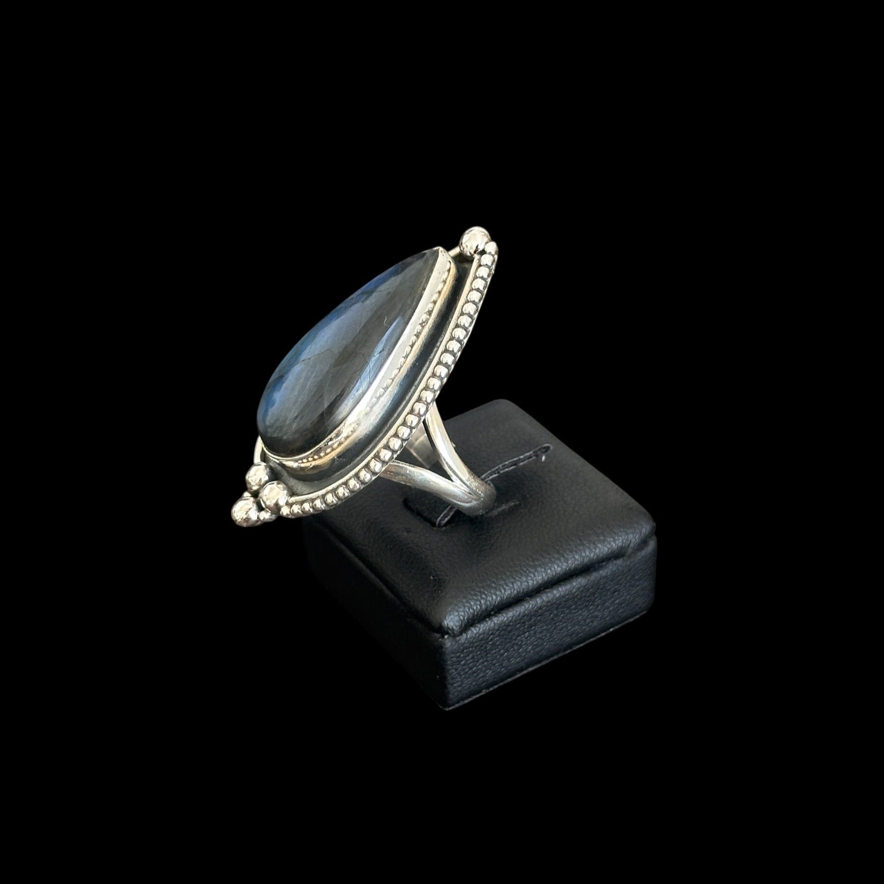 Anillo hecho a mano en plata de ley con Labradorita natural.