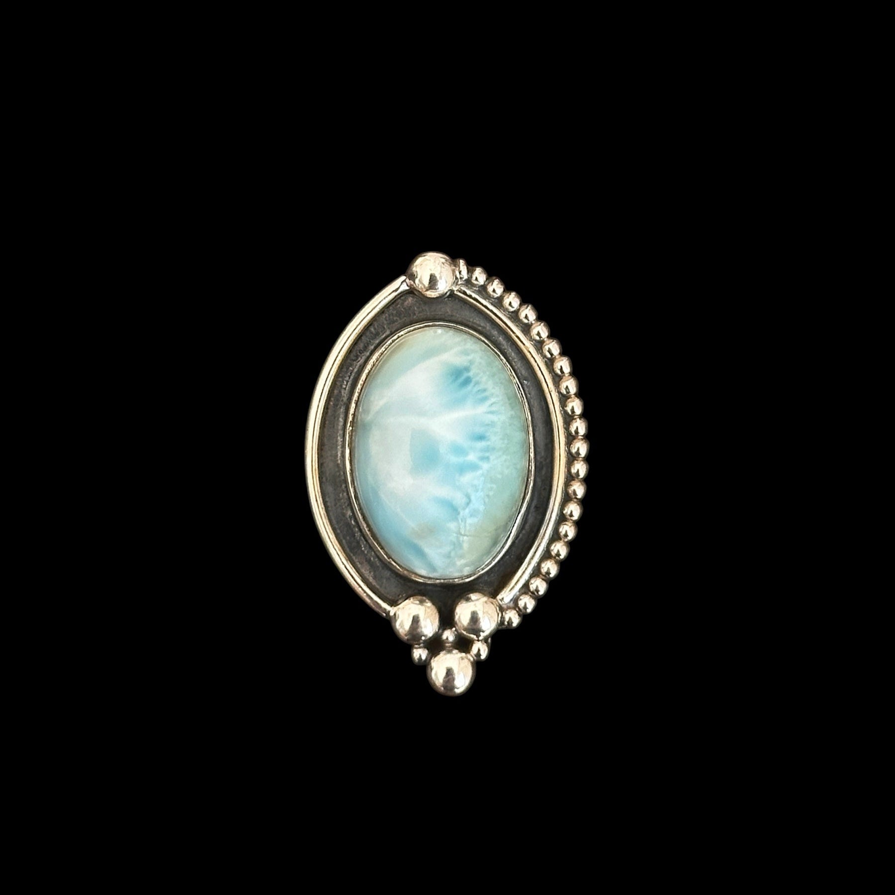 Anillo hehco a mano en plata de ley con Larimar natural.
