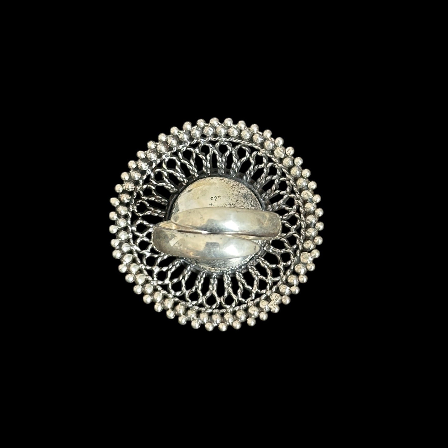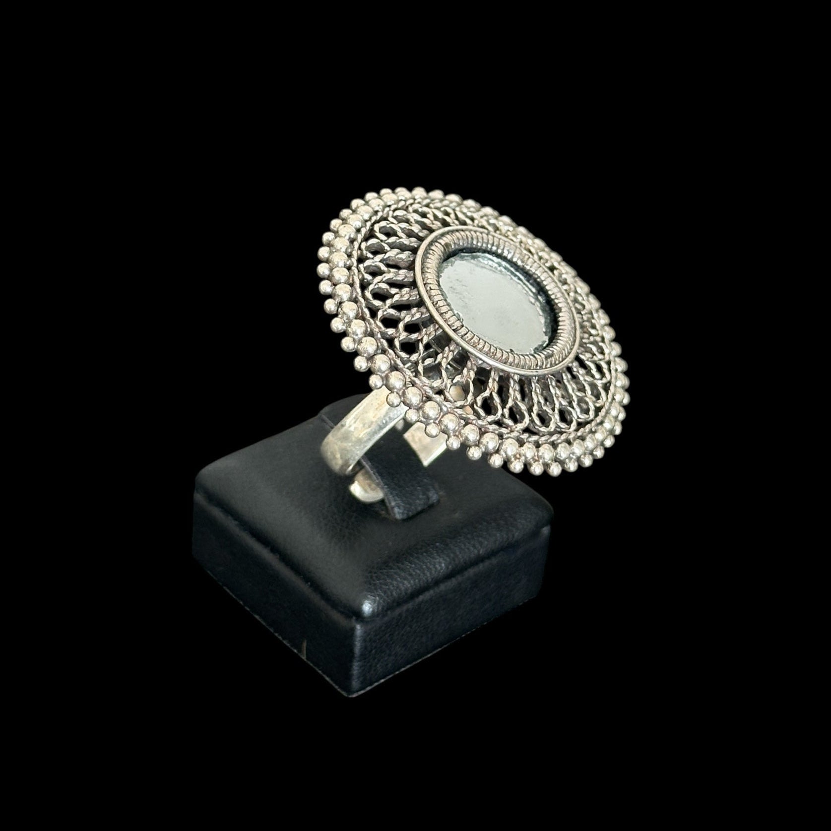 Anillo etnico hecho a mano en plata de ley con espejo central.