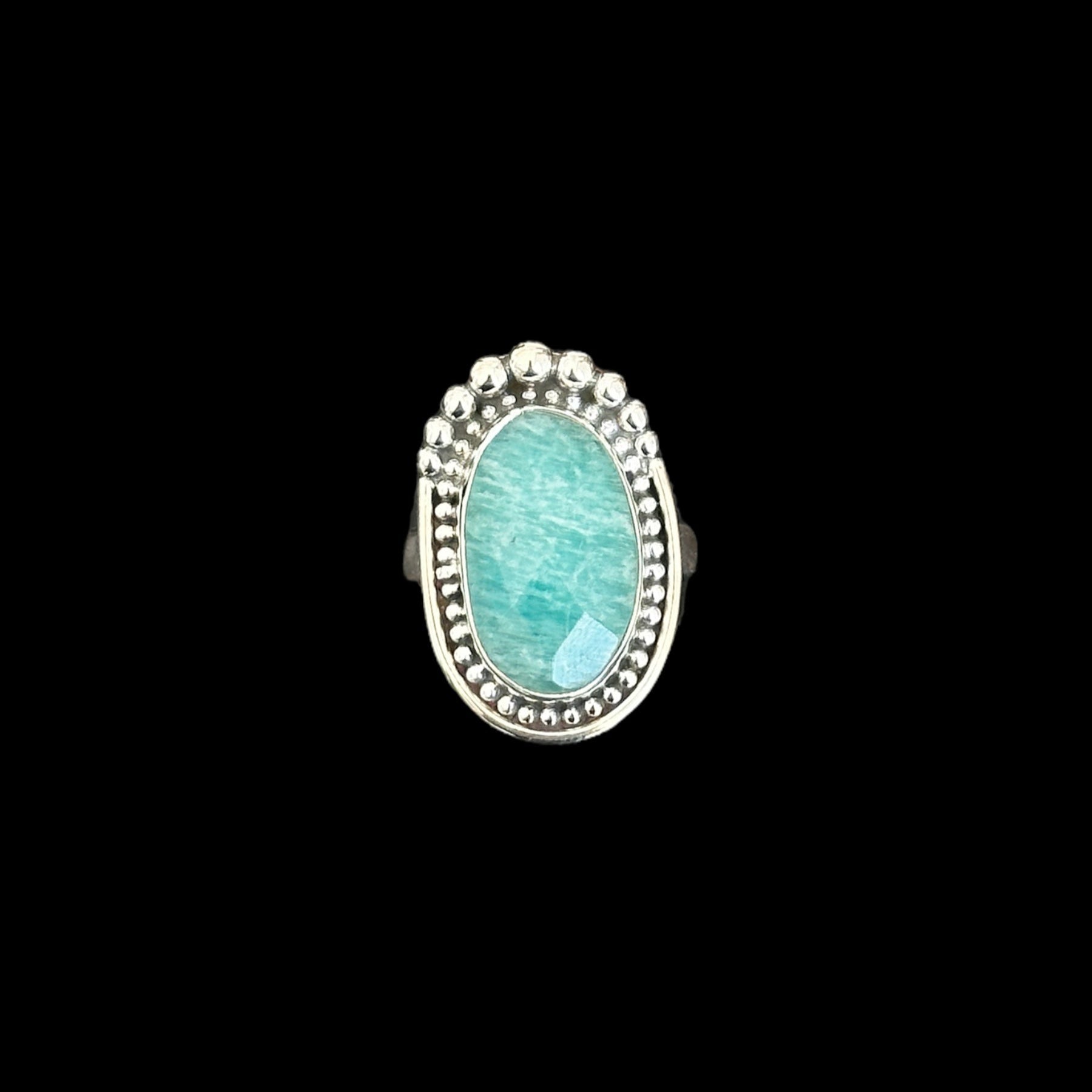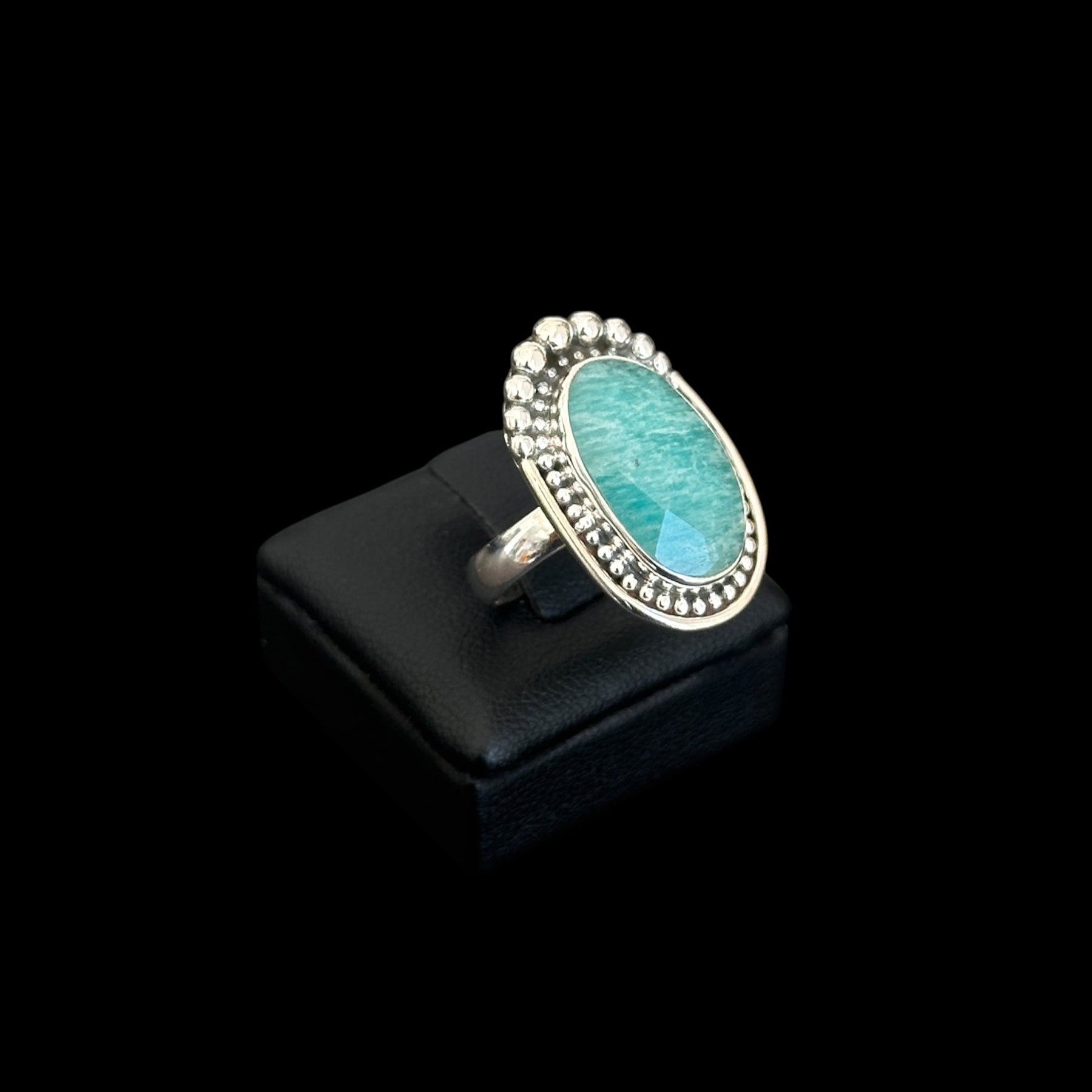 Anillo hecho a mano en plata de ley con Amazonita natural facetada.