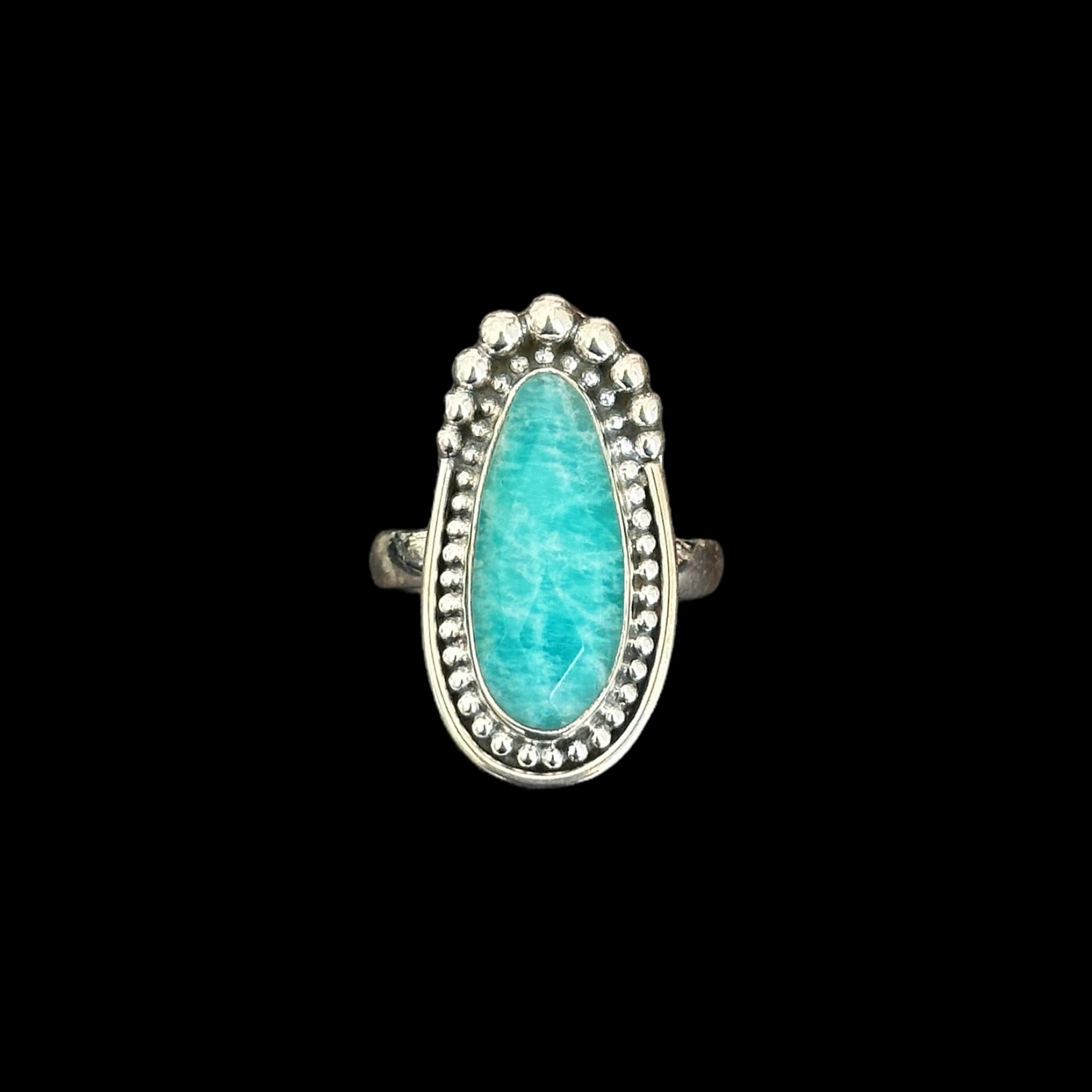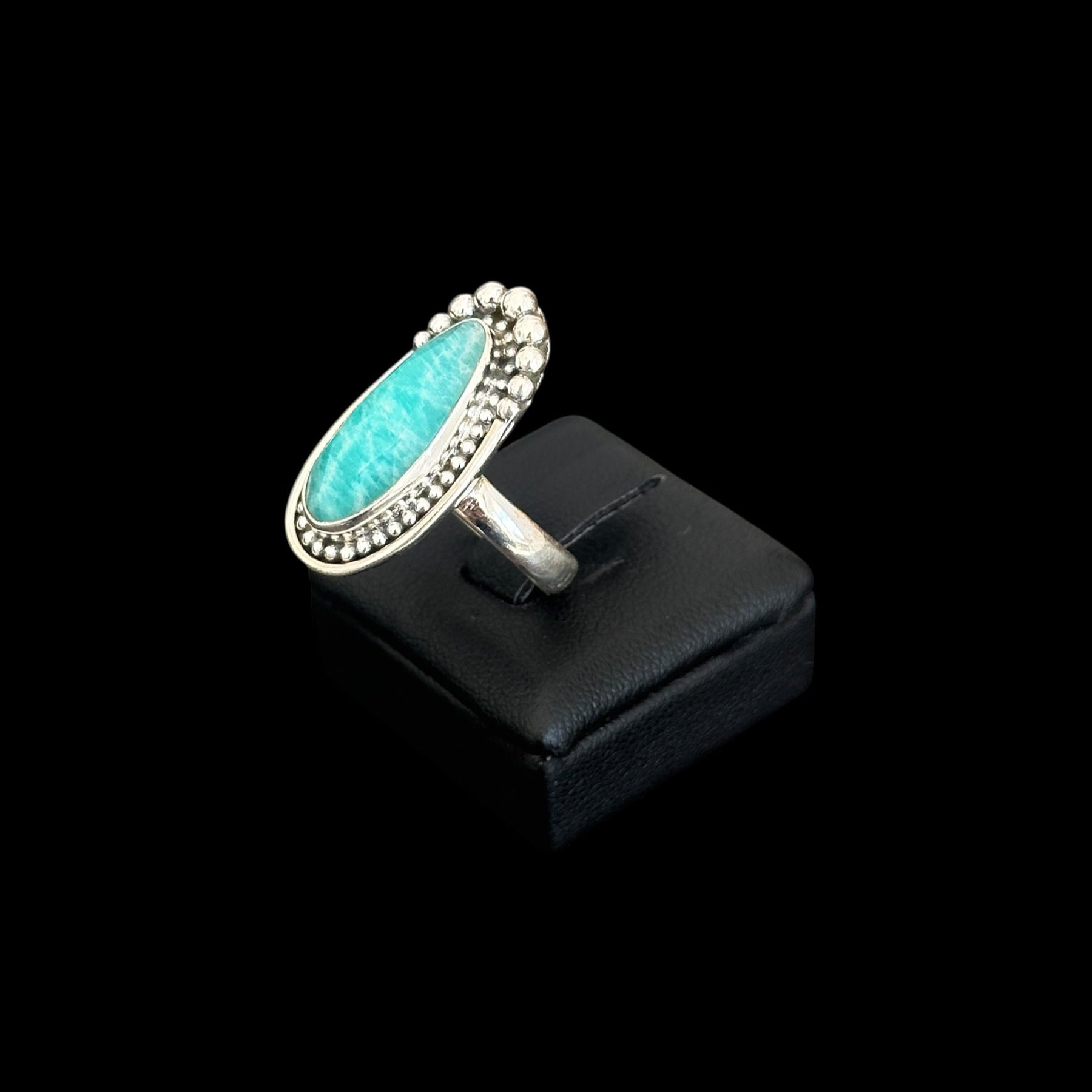 Anillo hecho a mano en plata de ley con Amazonita natural facetada.