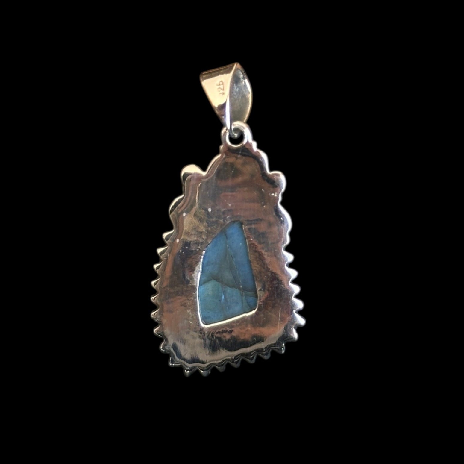 Colgante estilo etnico en plata de ley con Labradorita natural.