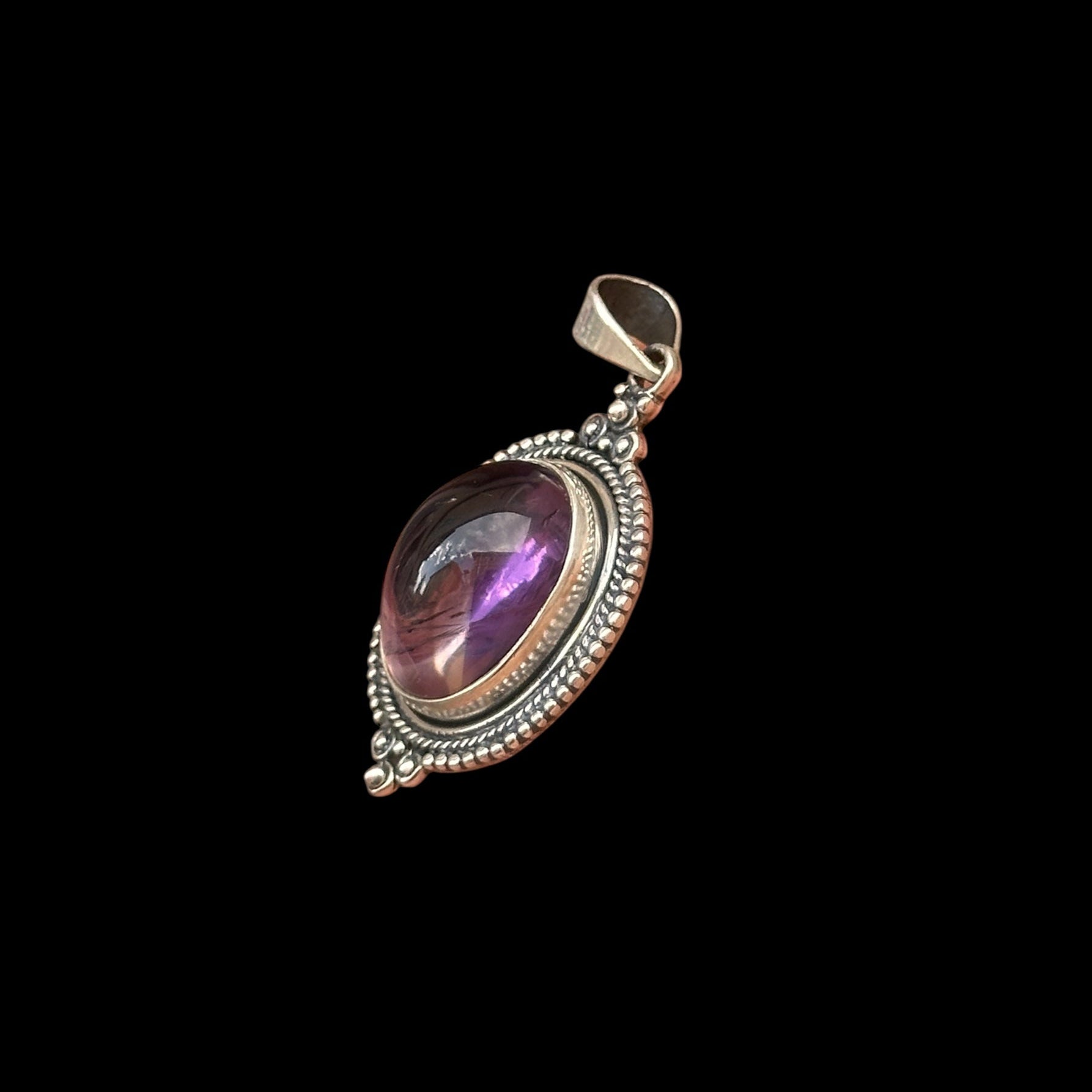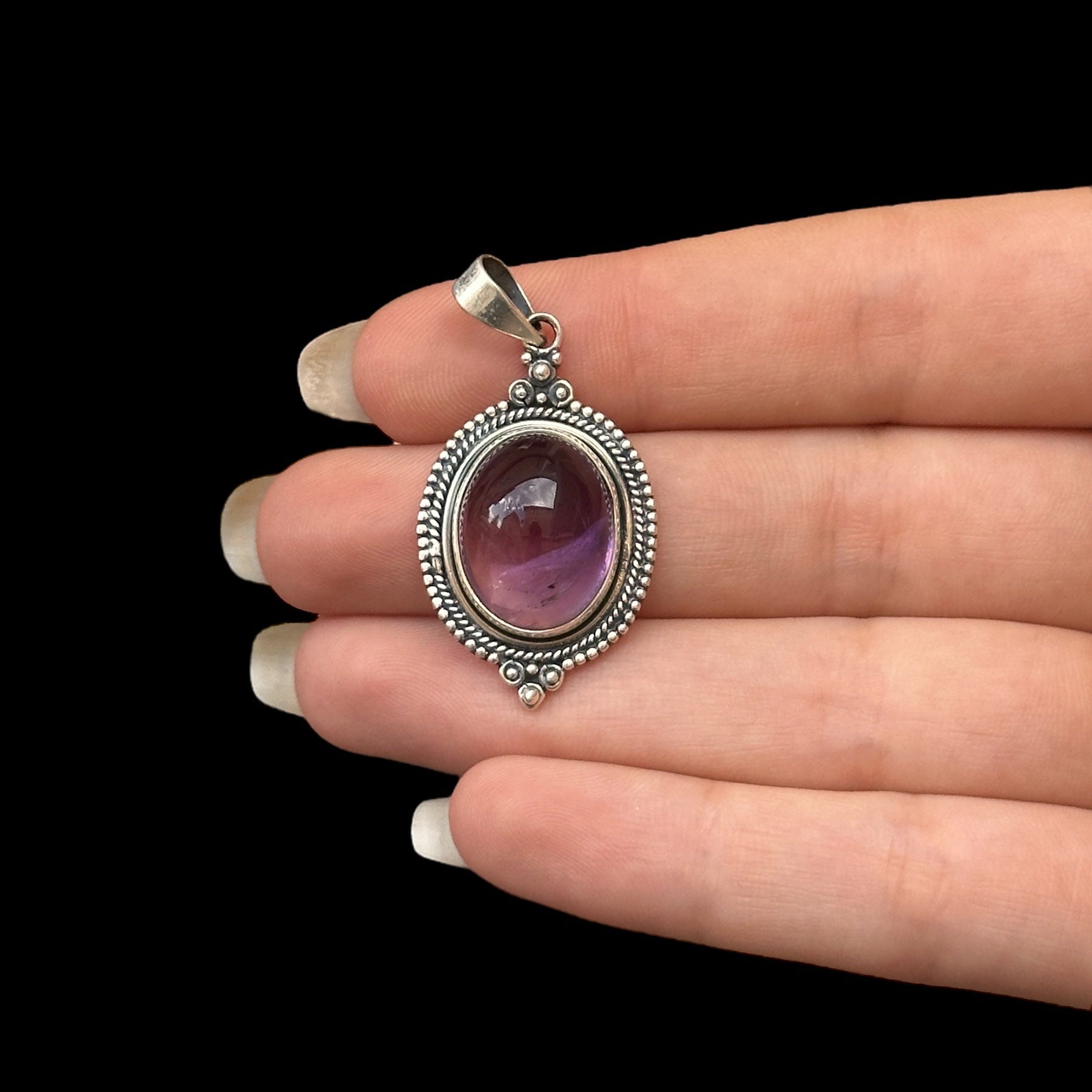 Colgante en plata de ley hecho a mano en plata de ley con amatista natural.