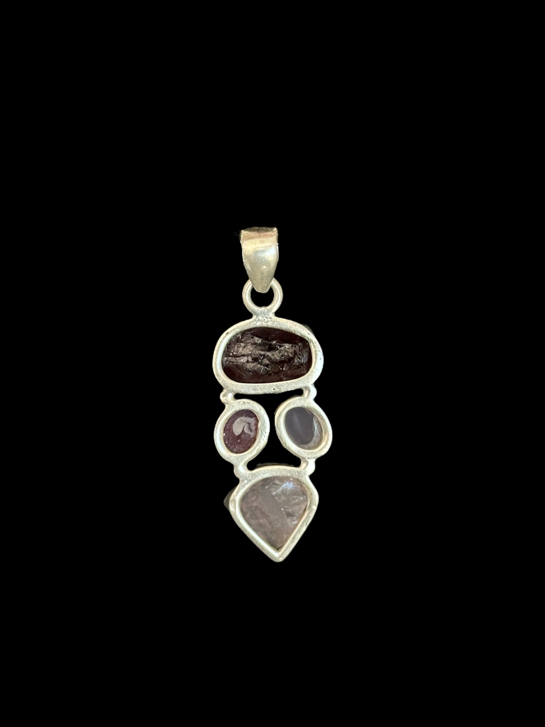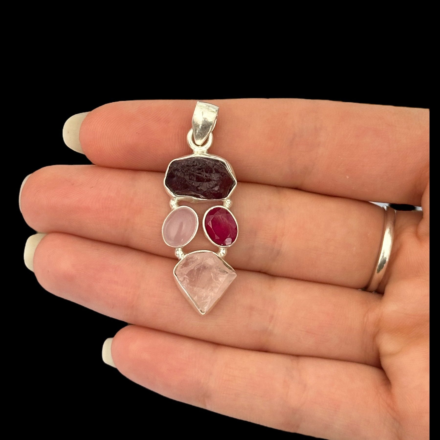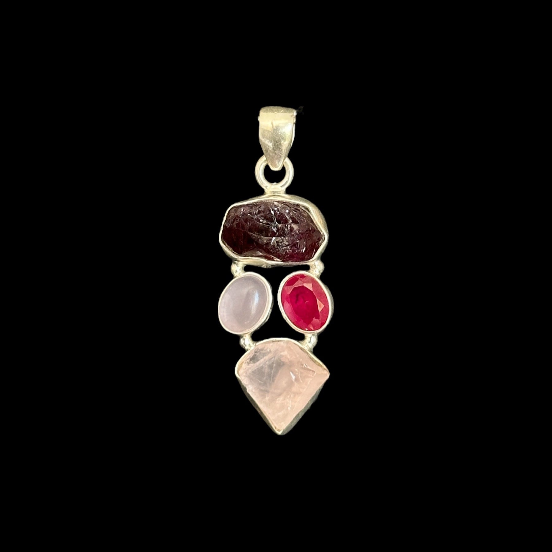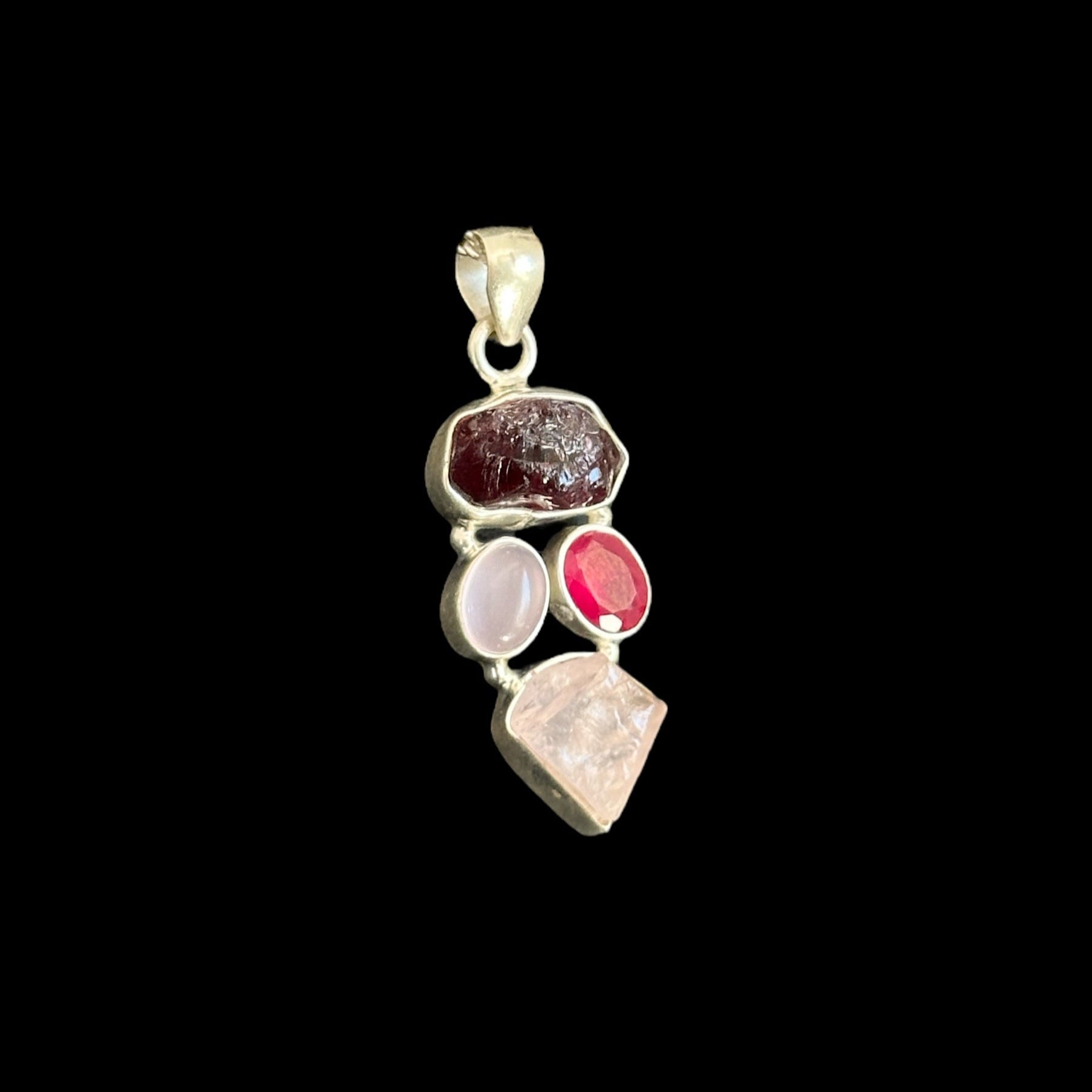 Colgante en plata 925 con Granates y Cuarzos Rosas