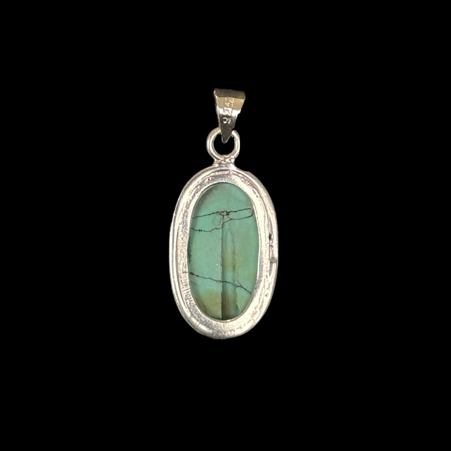 En la parte trasera, la piedra presenta una pequeña incisión realizada por el artesano para garantizar su autenticidad y demostrar que se trata de una turquesa natural y no una imitación teñida.