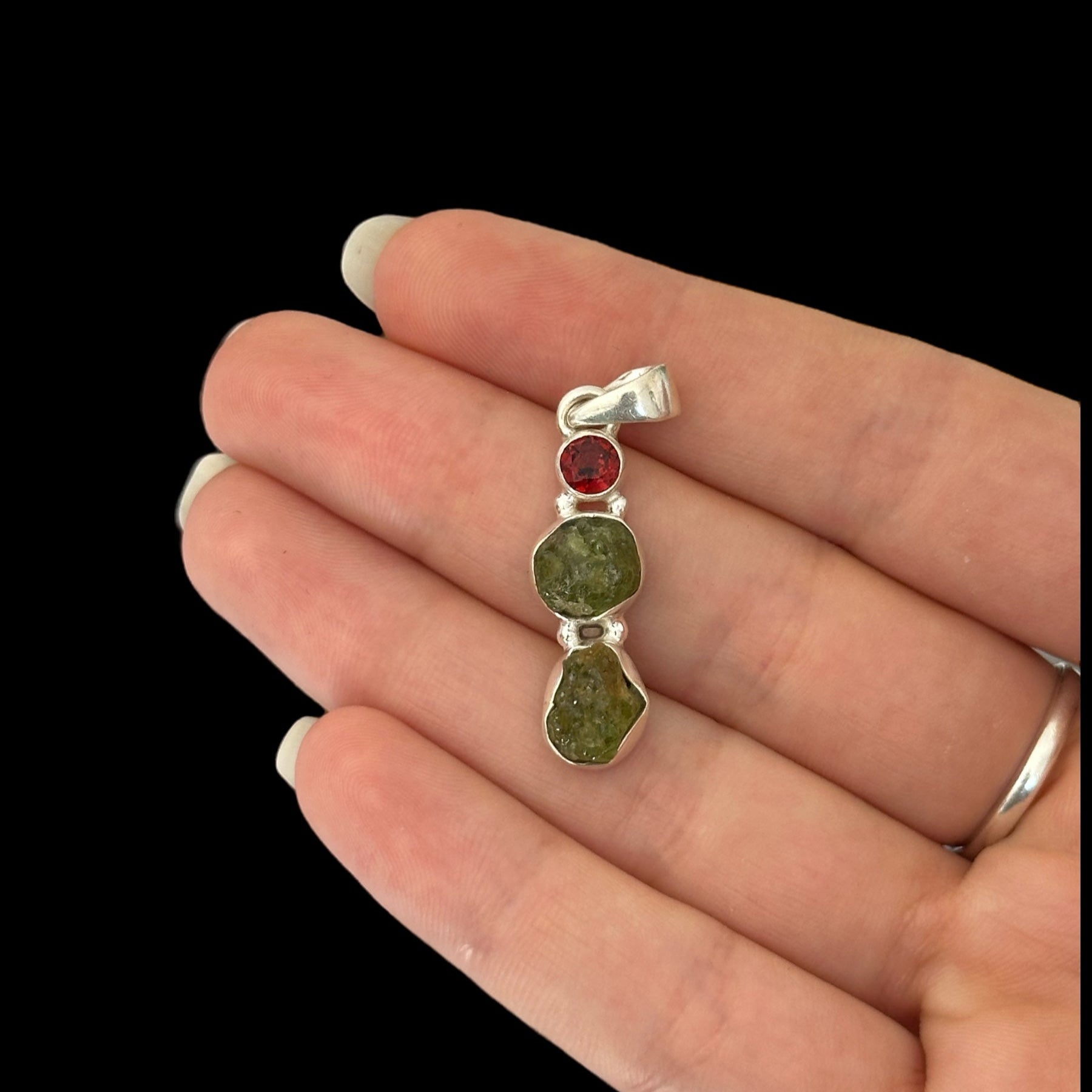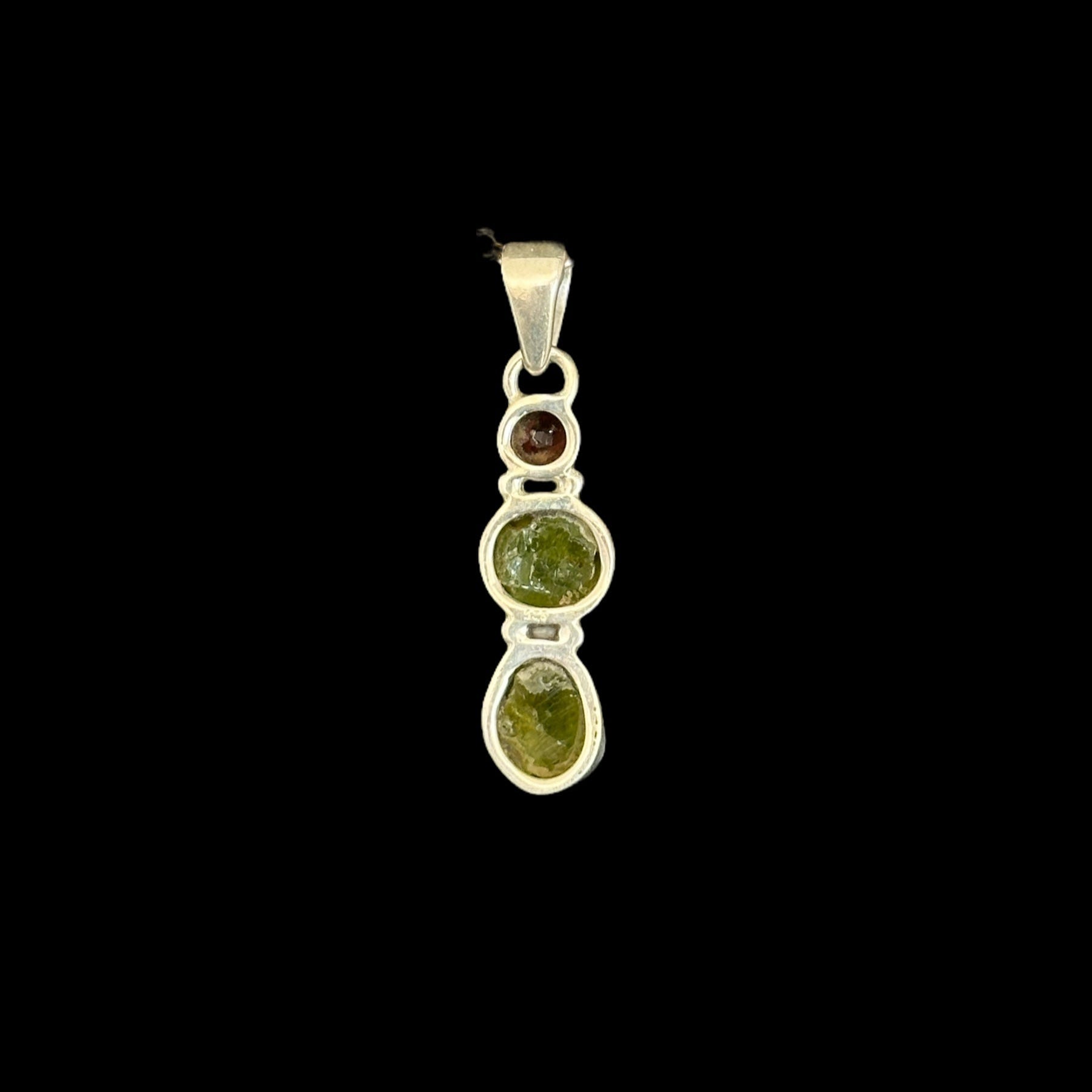 Colgante en plata de ley con Peridoto en bruto y Granate facetado