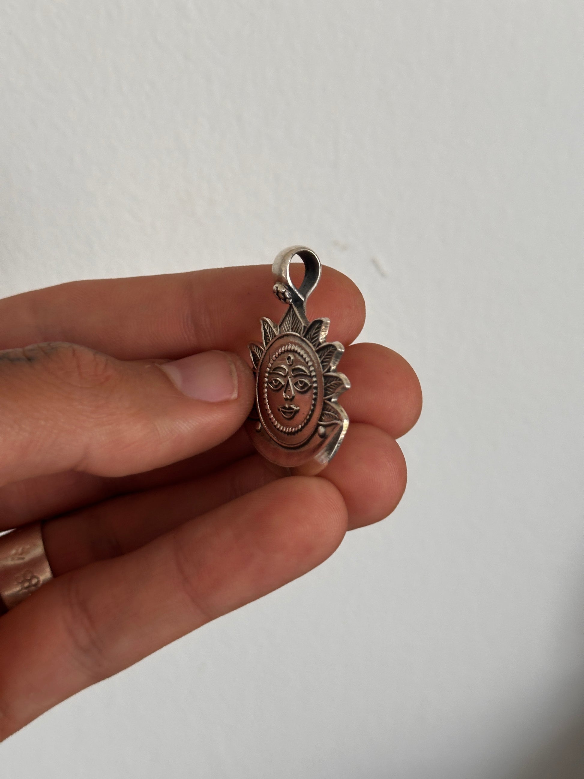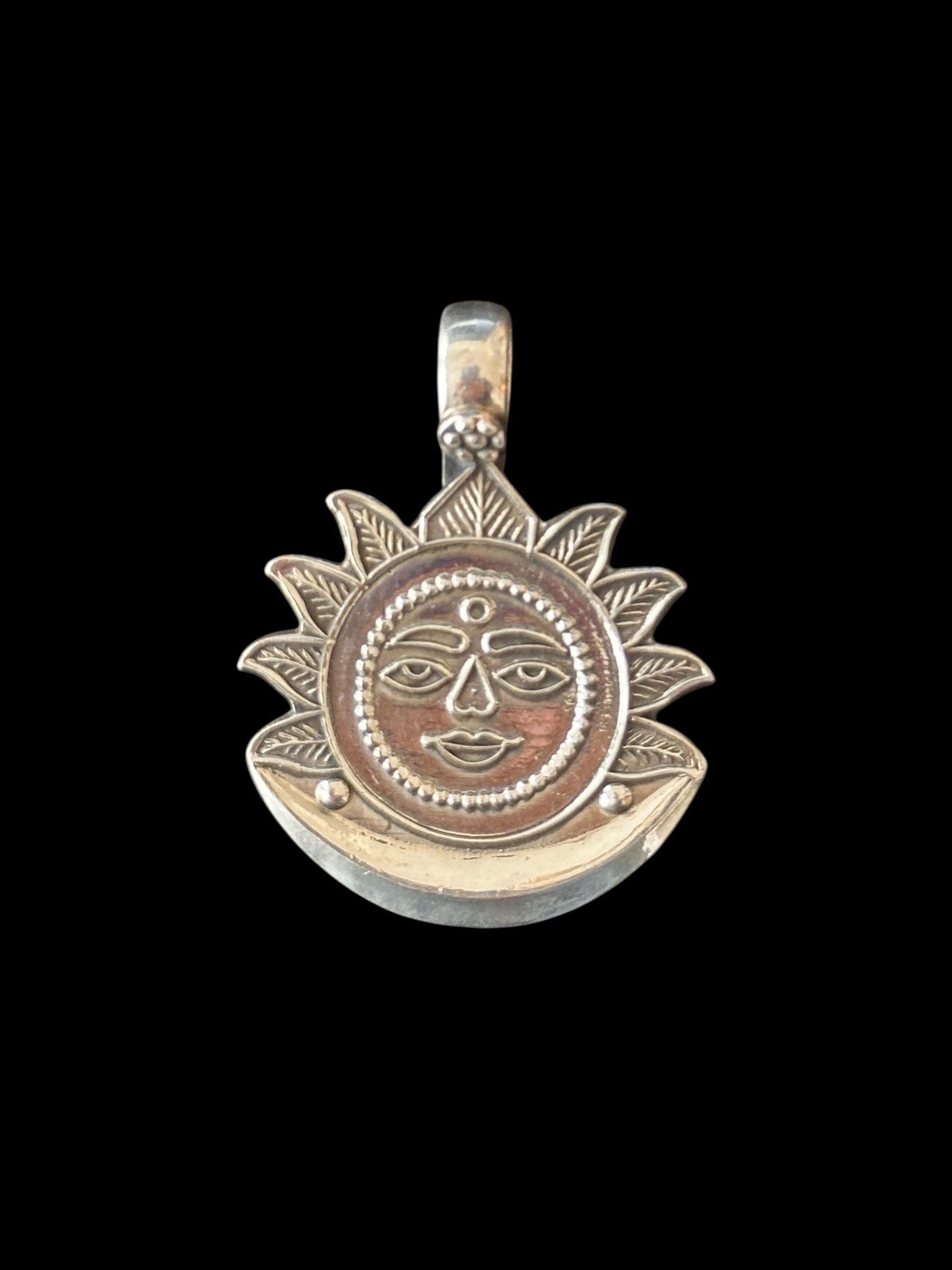 Elaborado en plata de ley (925), este colgante captura el sol, símbolo hinduista de energía divina y vida. Con diseño radiante que evoca luz y poder espiritual, fusiona arte tradicional y simbolismo sagrado. Ideal como amuleto o pieza de significado cultural, hecho con técnicas artesanales.