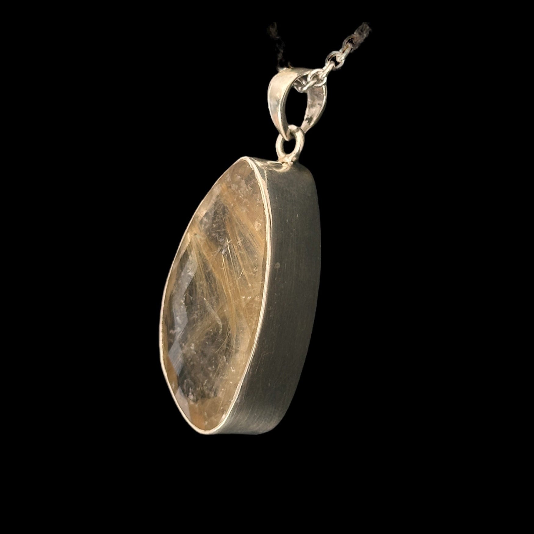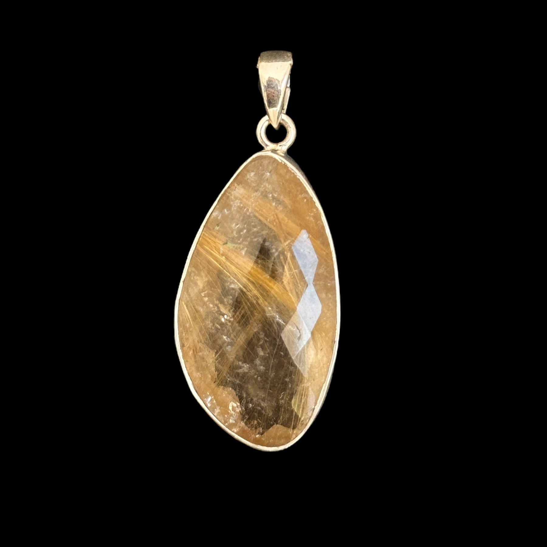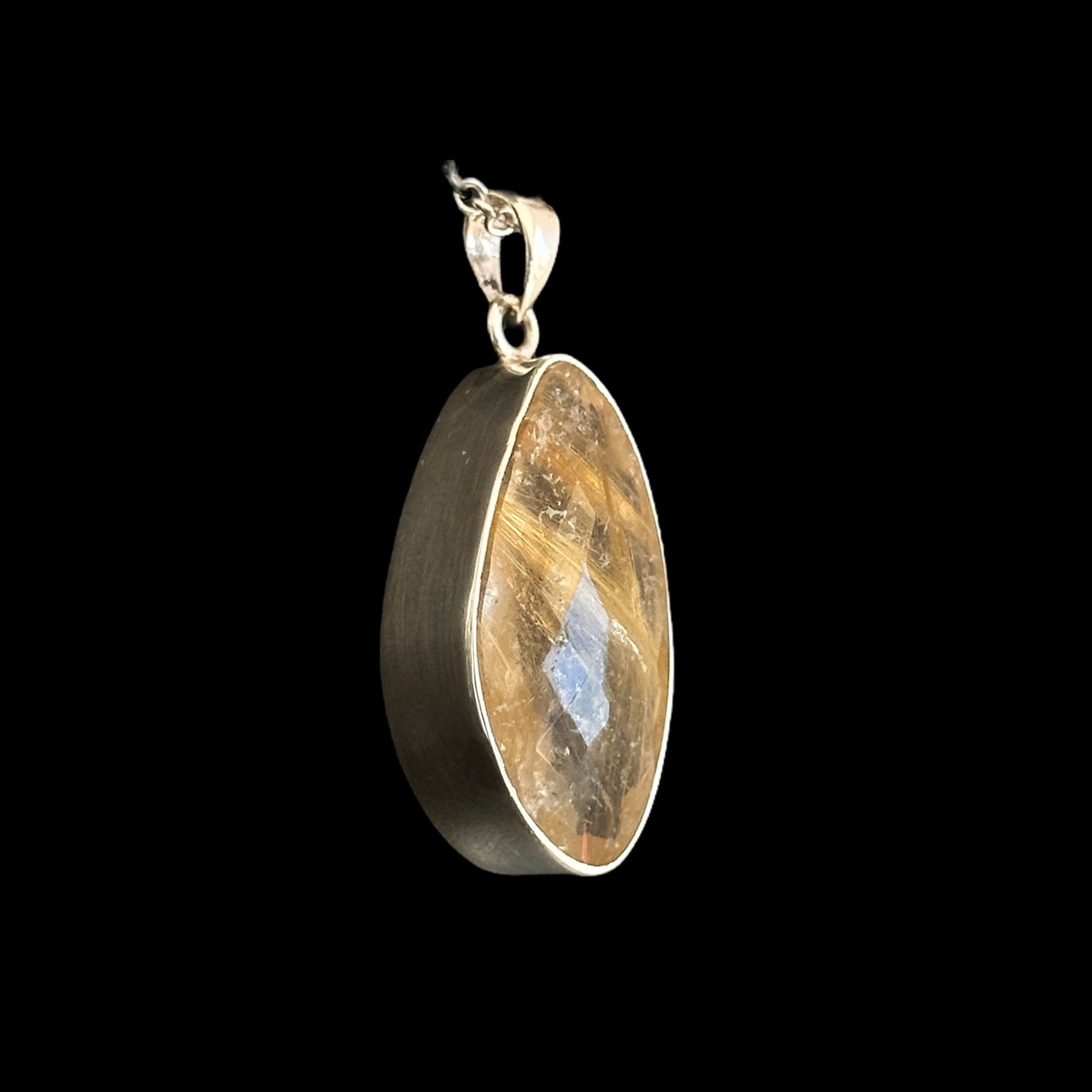 Colgante en plata de ley con Cuarzo Rutilado Facetado Natural.