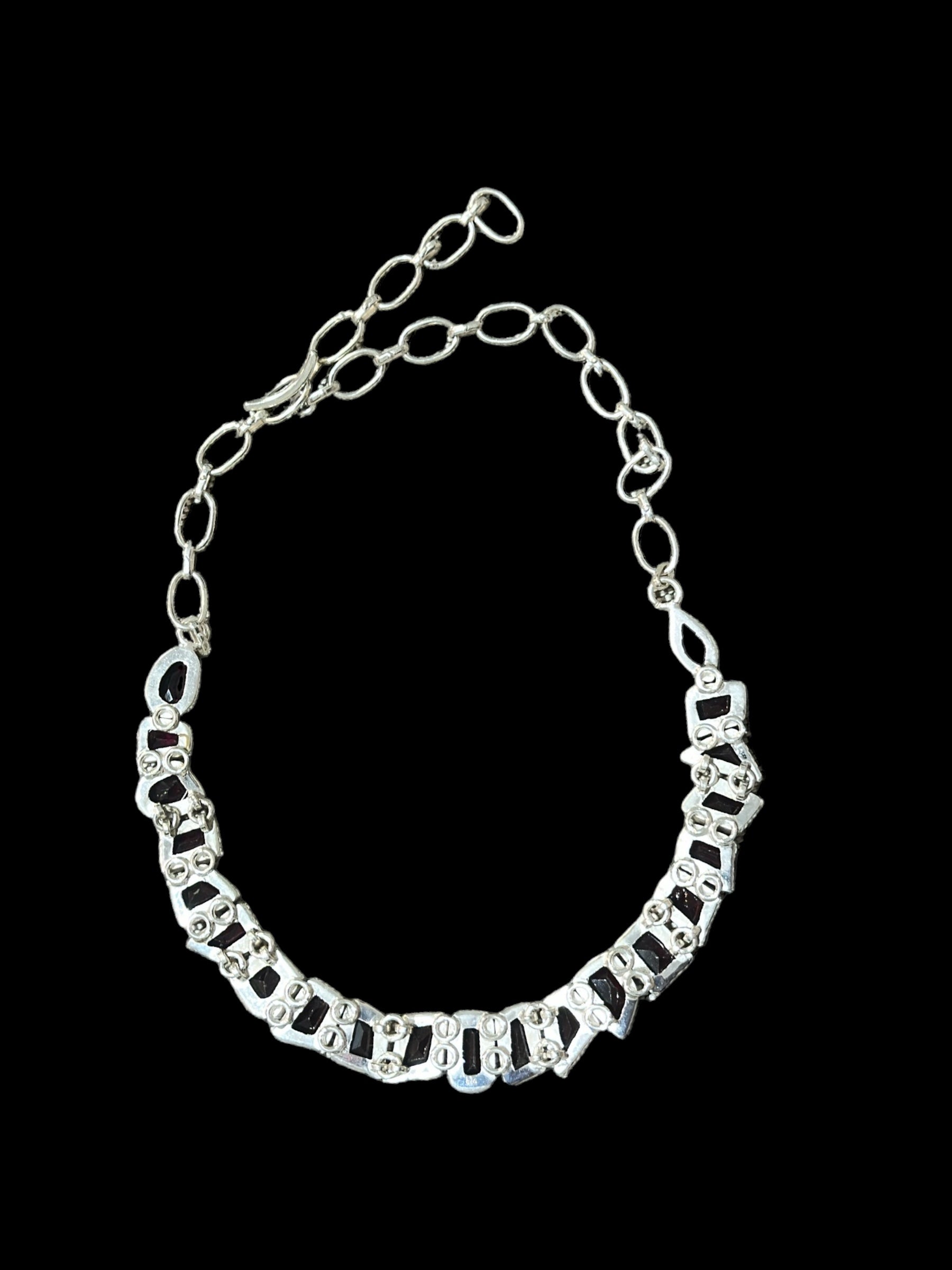 Collar hehco a mano en palata de ley con granates naturales.