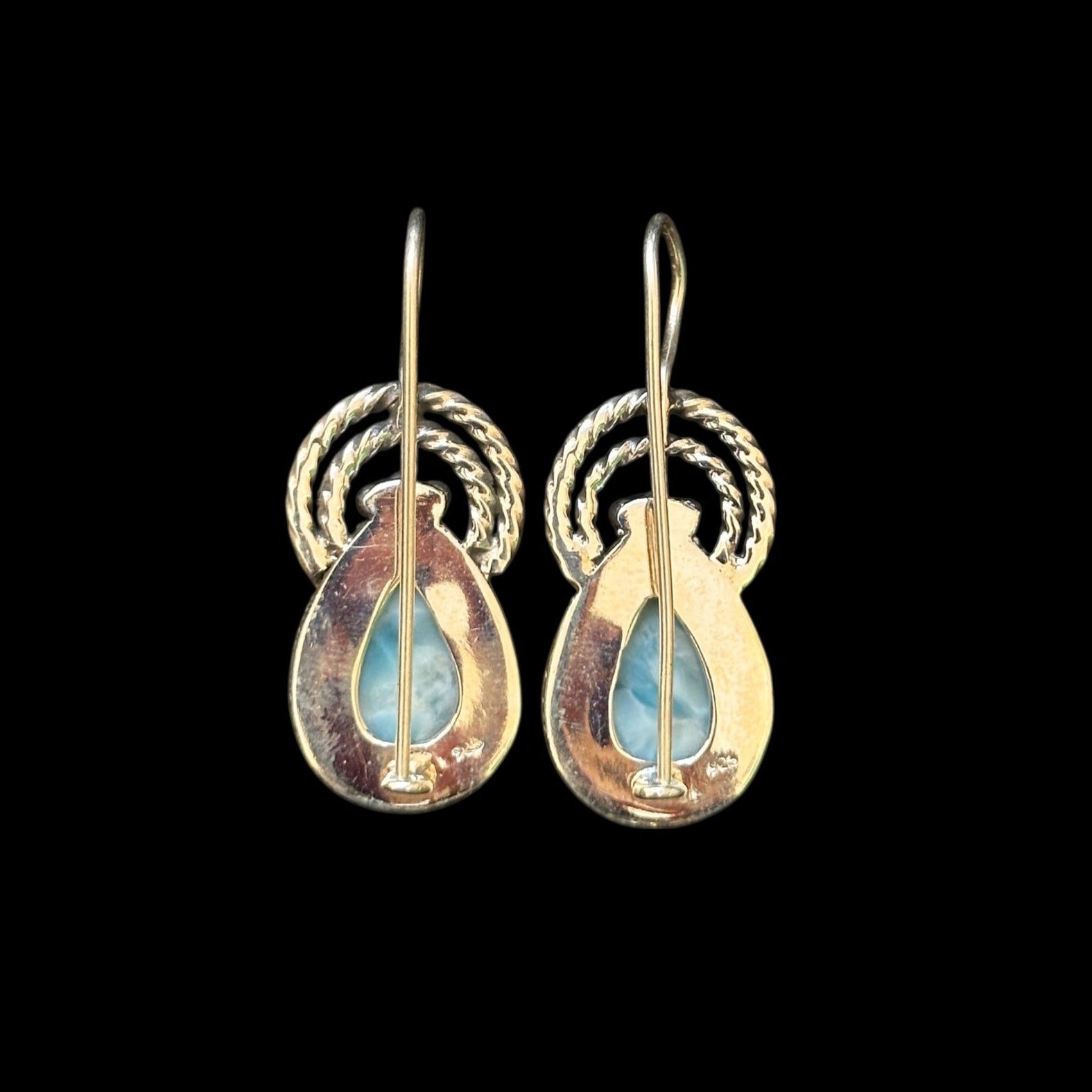 Pendiente hechos a mano en plata de ley con Larimar narural.