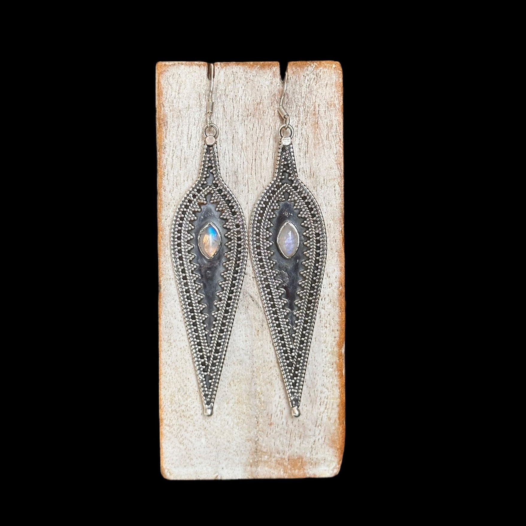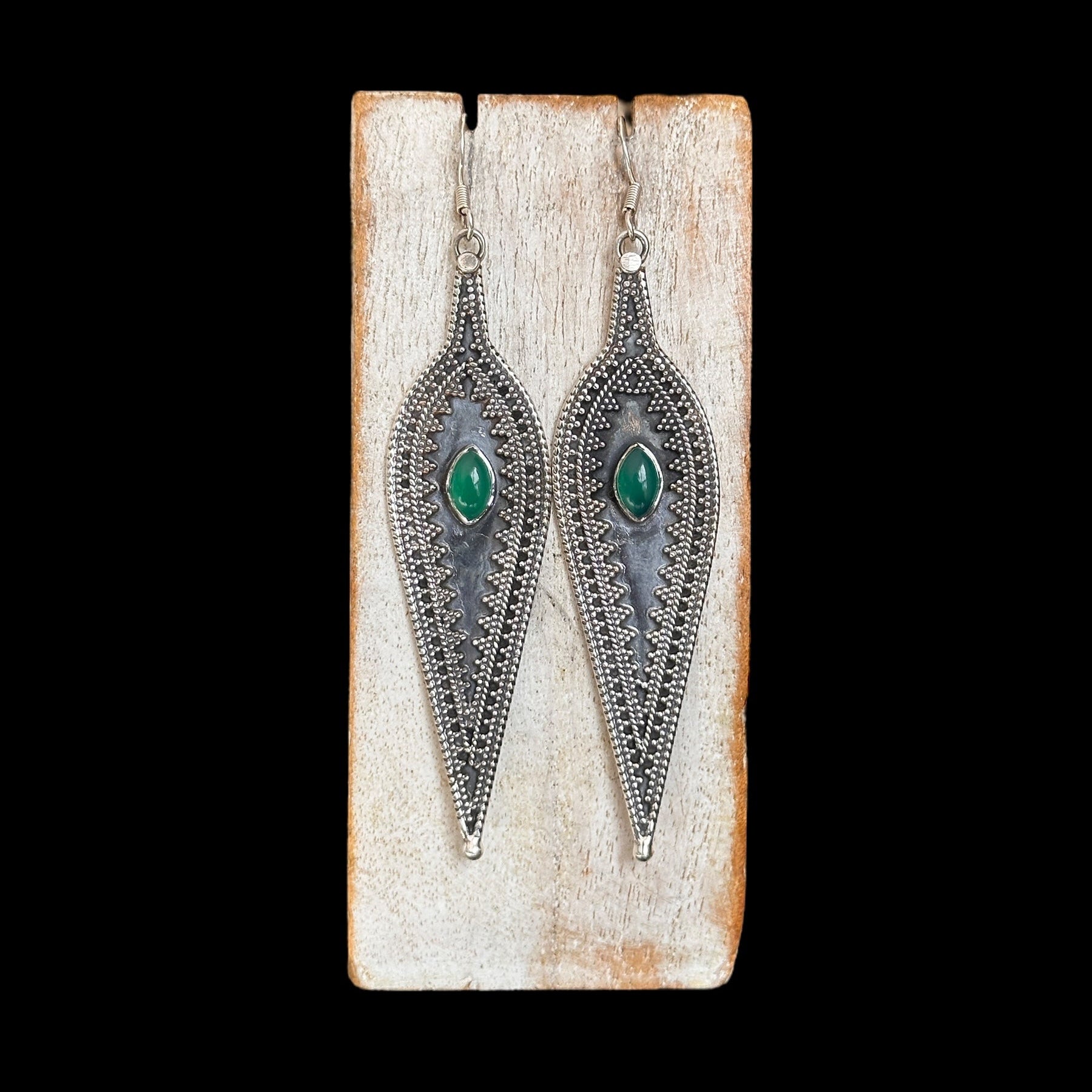 Pendientes estilo Hindù en forma de gota larga con detalles etnicos.