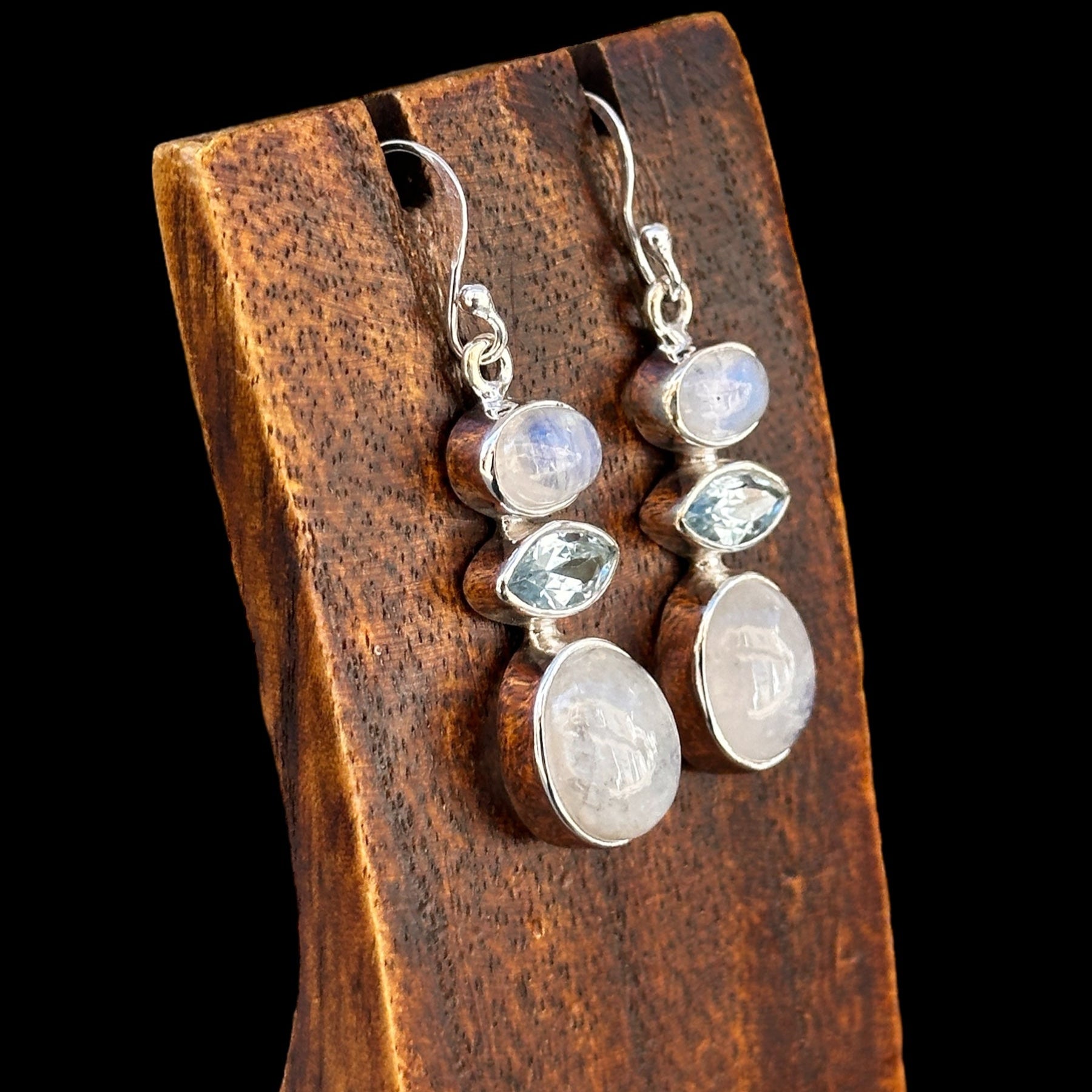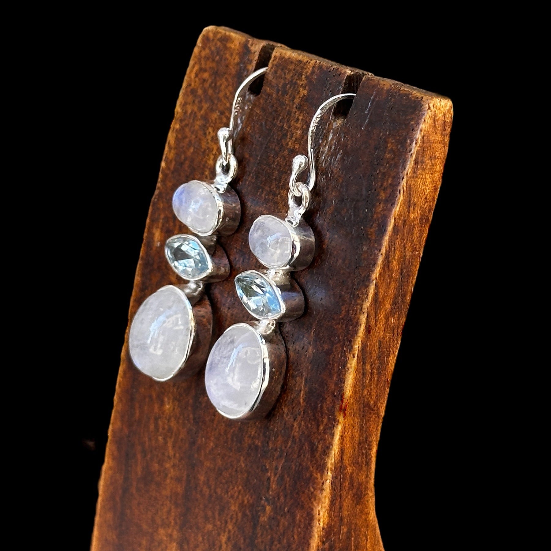Pendientes de plata de ley con Piedras de Luna y topacio natural